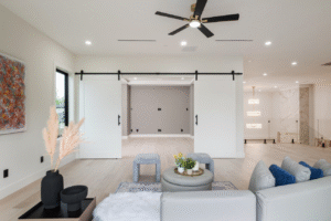 The IRACA Group’s design of 4326 Merrell Rd. in Dallas, Texas stands as a brilliant testament to modern architectural innovation. The property showcases a harmonious blend of clean lines, open spaces, and thoughtful integration of natural elements. With its minimalist façade and strategically placed windows, the home invites an abundance of natural light, creating a seamless connection between indoor and outdoor living spaces. The use of sustainable materials and energy-efficient systems further reflects IRACA Group’s commitment to both aesthetic and environmental excellence. This residence exemplifies the essence of modern architecture, prioritizing functionality, simplicity, and elegance while delivering a design that feels both contemporary and timeless.